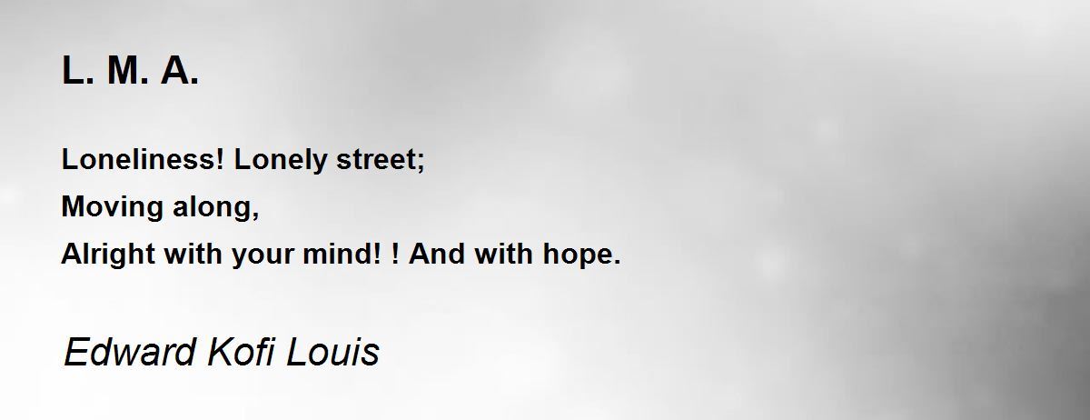 Loneliness! Lonely street; Moving along, Alright with your mind! ! And with hope.