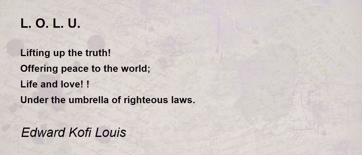 Lifting up the truth! Offering peace to the world; Life and love! ! Under the umbrella of righteous laws.