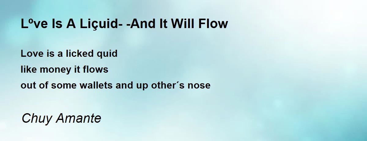 Love is a licked quid like money it flows out of some wallets and up other´s nose