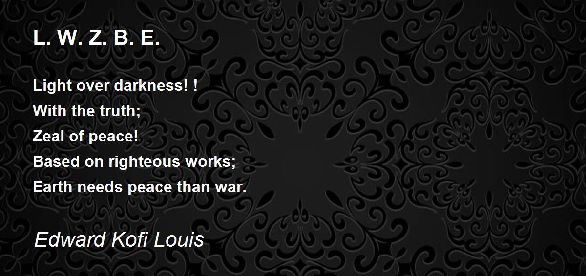 Light over darkness! ! With the truth; Zeal of peace! Based on righteous works; Earth needs peace than war.