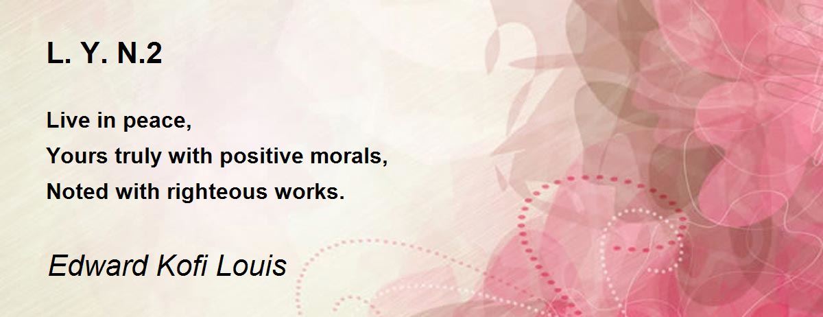 Live in peace, Yours truly with positive morals, Noted with righteous works.
