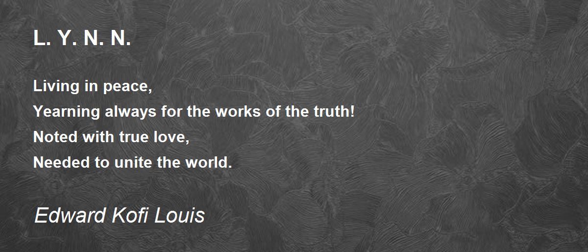 Living in peace, Yearning always for the works of the truth! Noted with true love, Needed to unite the world.