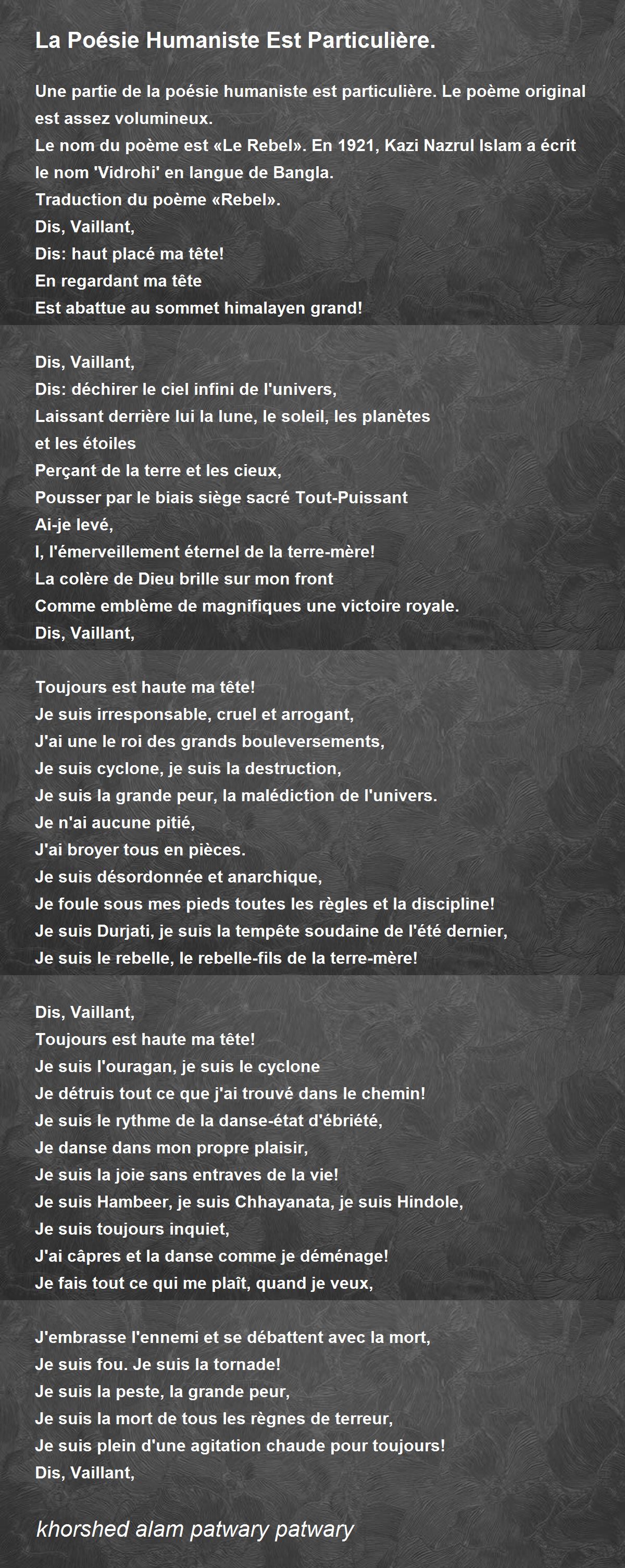 Le nom du poème est «Le Rebel». En 1921, Kazi Nazrul Islam a écrit le nom 'Vidrohi' en langue de Bangla.