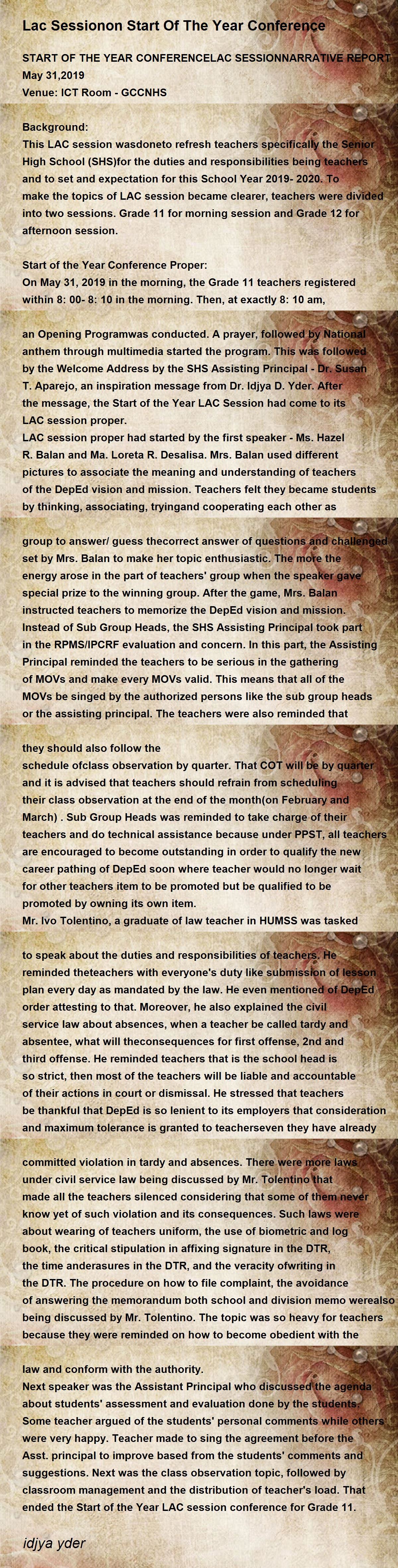 START OF THE YEAR CONFERENCELAC SESSIONNARRATIVE REPORT