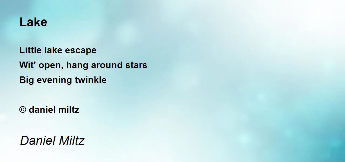 Little lake escape Wit' open, hang around stars Big evening twinkle © daniel miltz