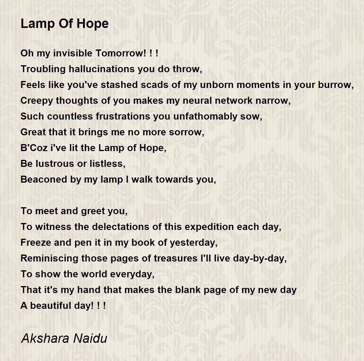 Oh my invisible tomorrow please come and light my lamp of hope for.....wonderful urging and beautiful poem composed. Nice job on sharing.