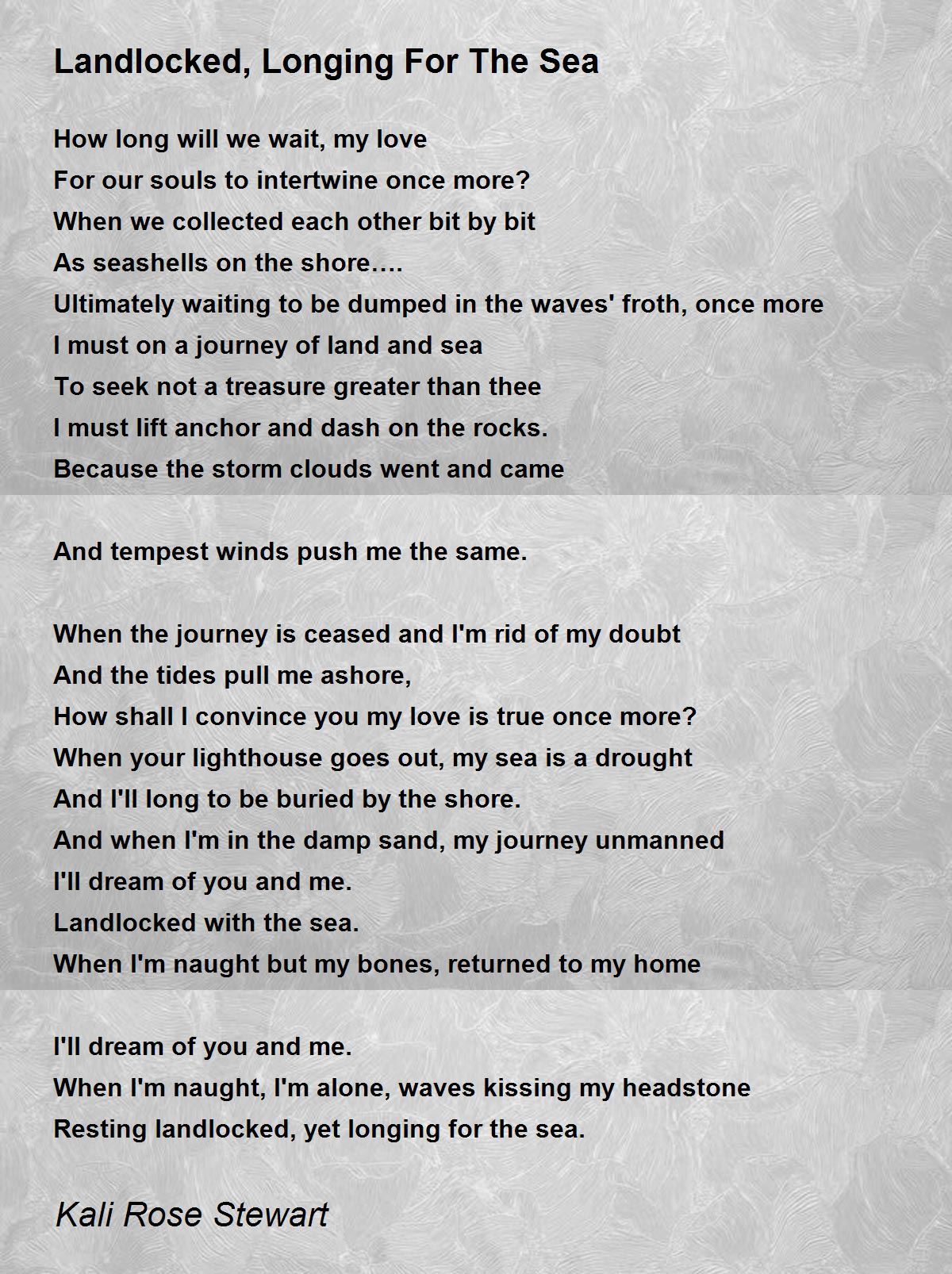 When I'm naught, I'm alone, waves kissing my headstone