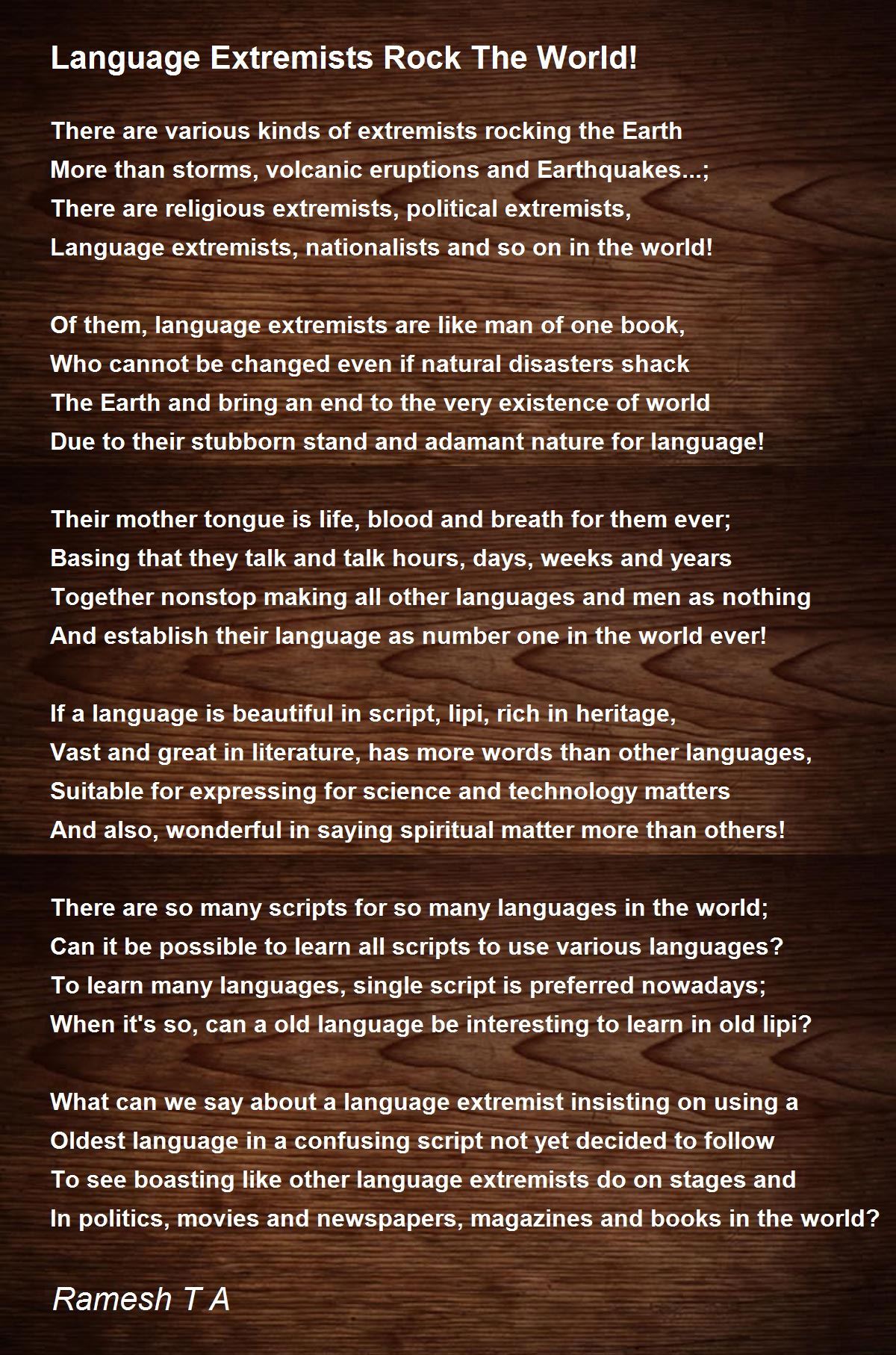 Of them, language extremists are like man of one book, great write, thanks for sharing the poem with us,10