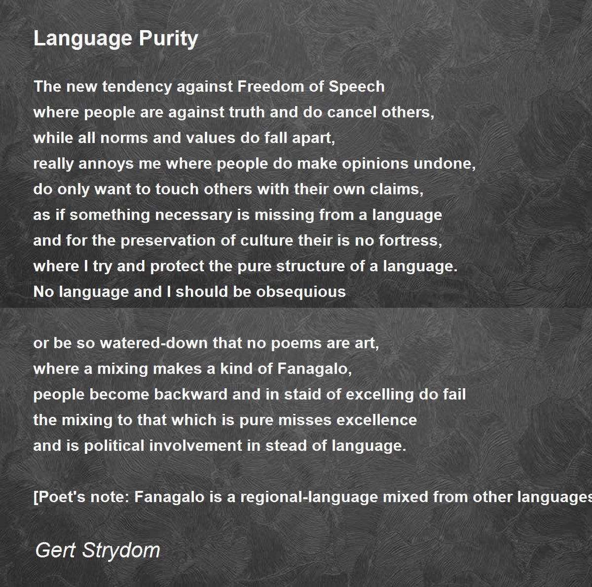 [Poet's note: Fanagalo is a regional-language mixed from other languages.]