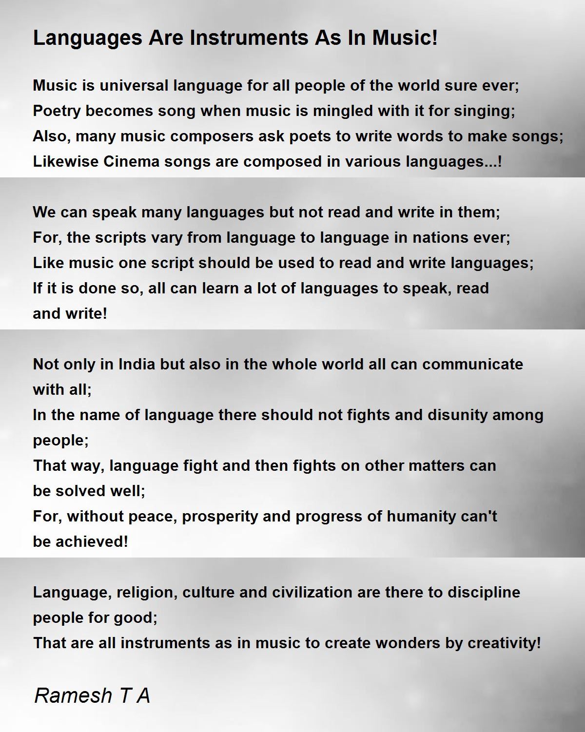 Language, religion, culture and civilization are there to discipline people for good; That are all instruments as in music to create wonders by creativity!
