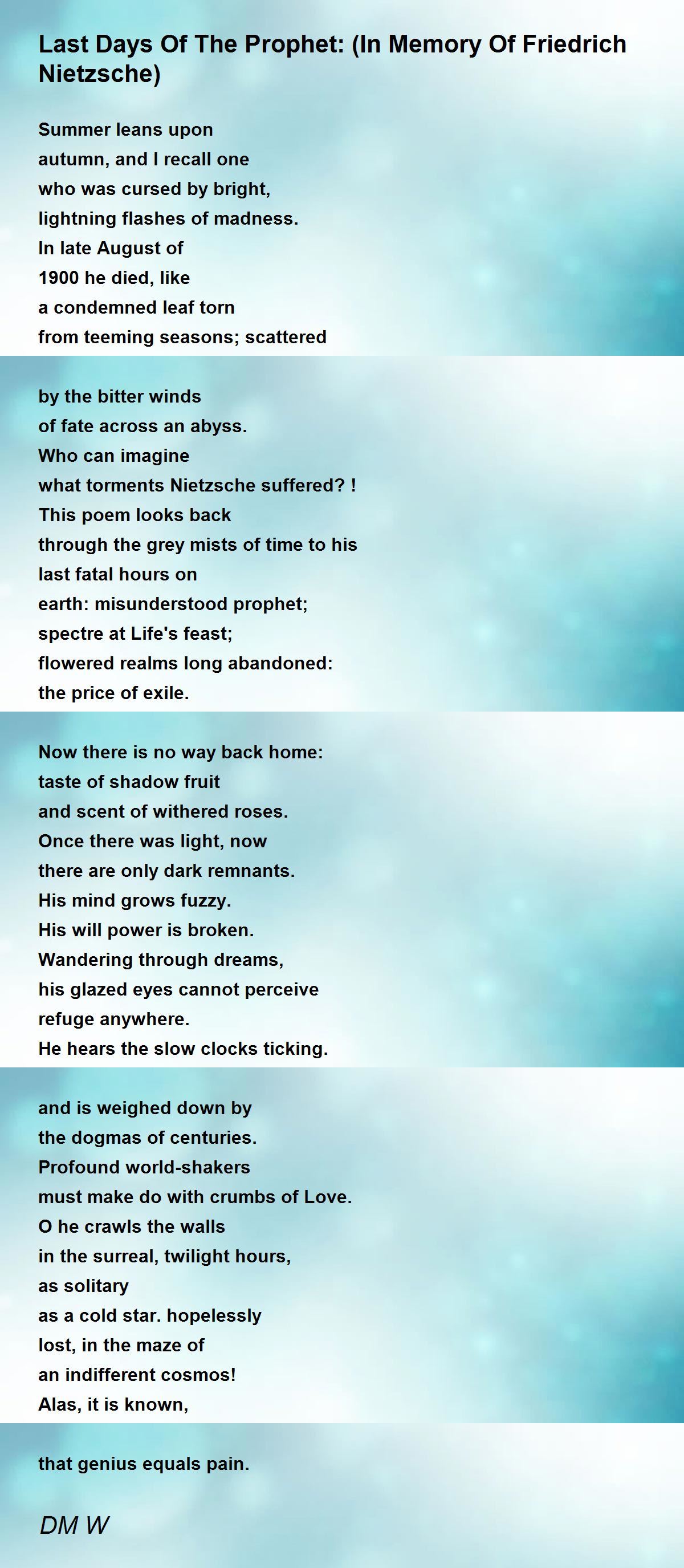 what torments Nietzsche suffered? !