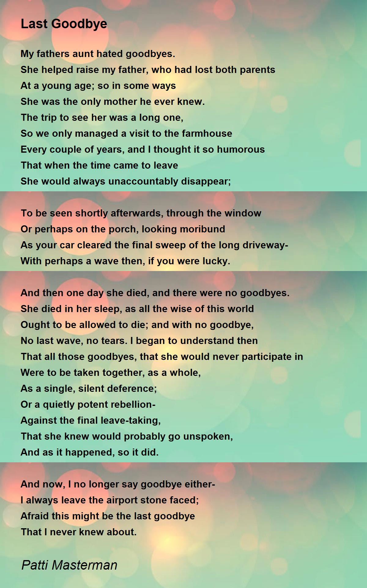 And then one day she died, and there were no goodbyes.