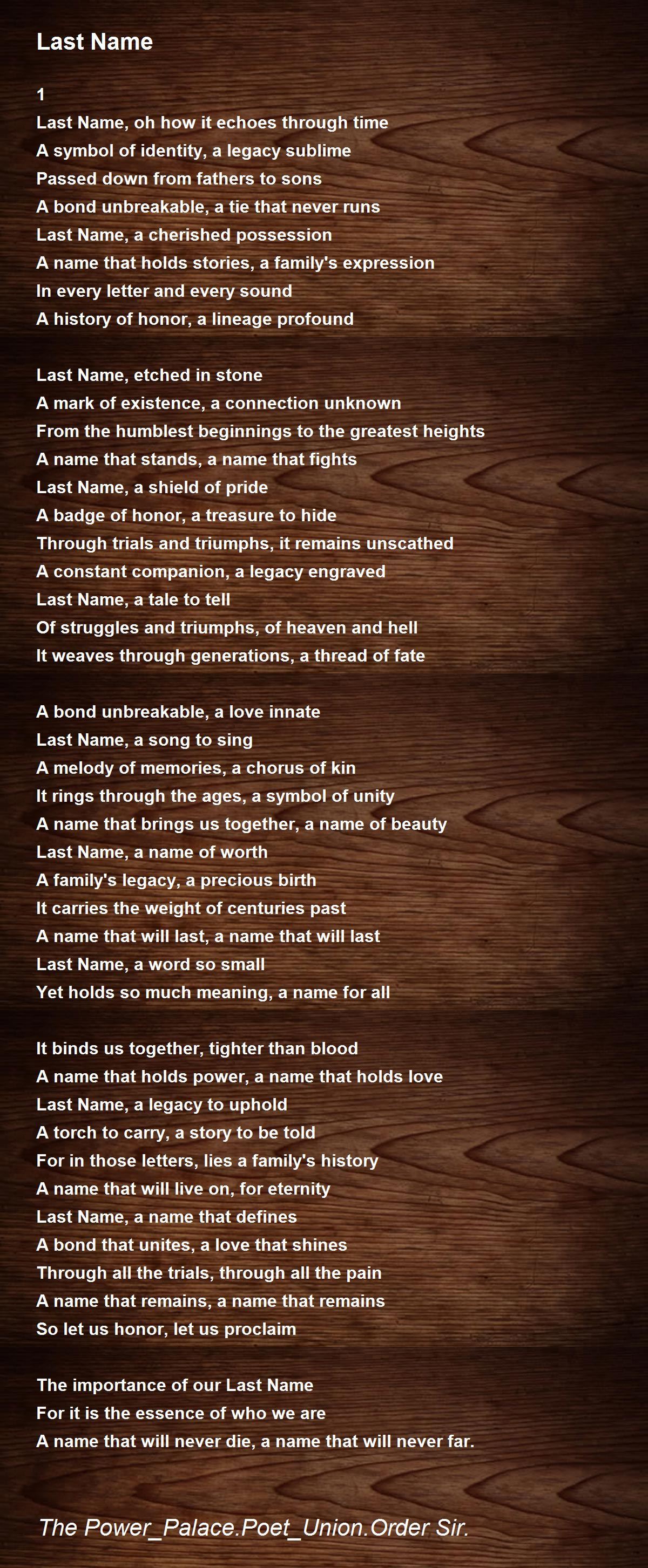 Last name, a name so dear