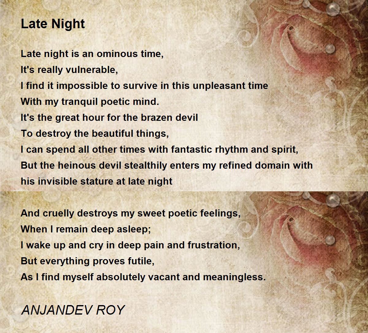 But the heinous devil stealthily enters my refined domain with his invisible stature at late night