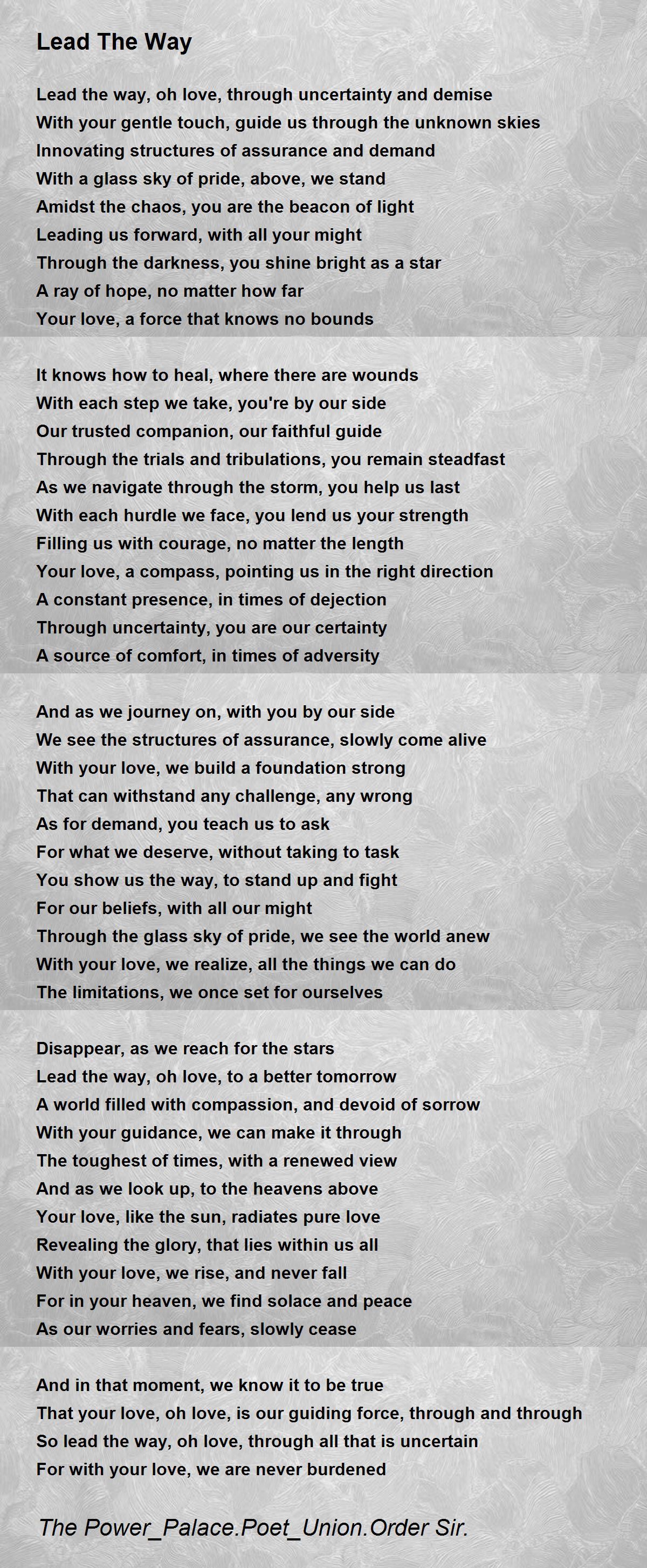 Lead the way, oh love, through uncertainty and demise
