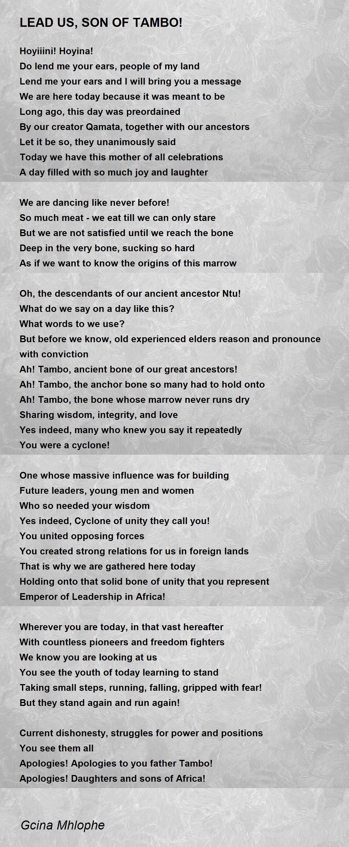 Tambo, leads us all, son of Tambo