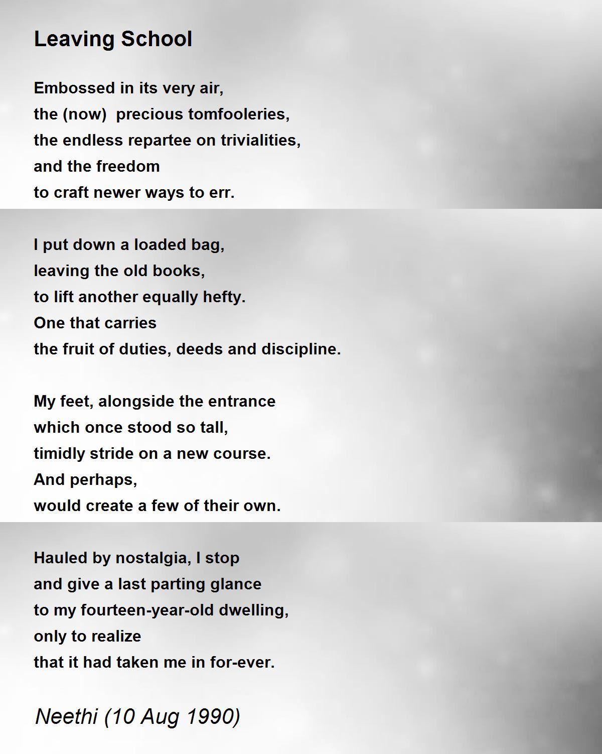 your ability to write poetry is amazing for an 18 year old don't ever stop i stopped writing poems for 25 years, but now i'm back in action check out some of my work, you might like it perhaps 'give us chinaski' might have meaning for you, it's in honor of my favorite poet, Charles Bukowski careful though, if you check out his work, he is often crude and pulls no punches