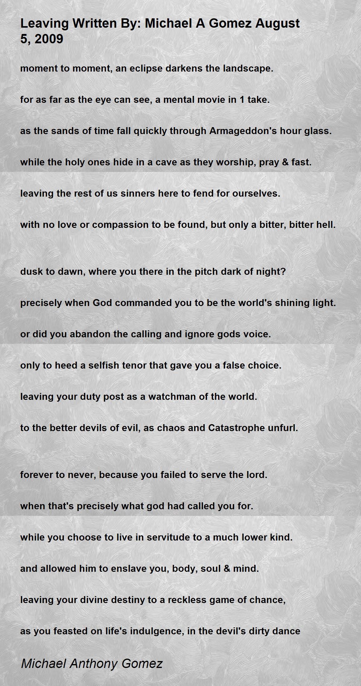 leaving your duty post as a watchman of the world.