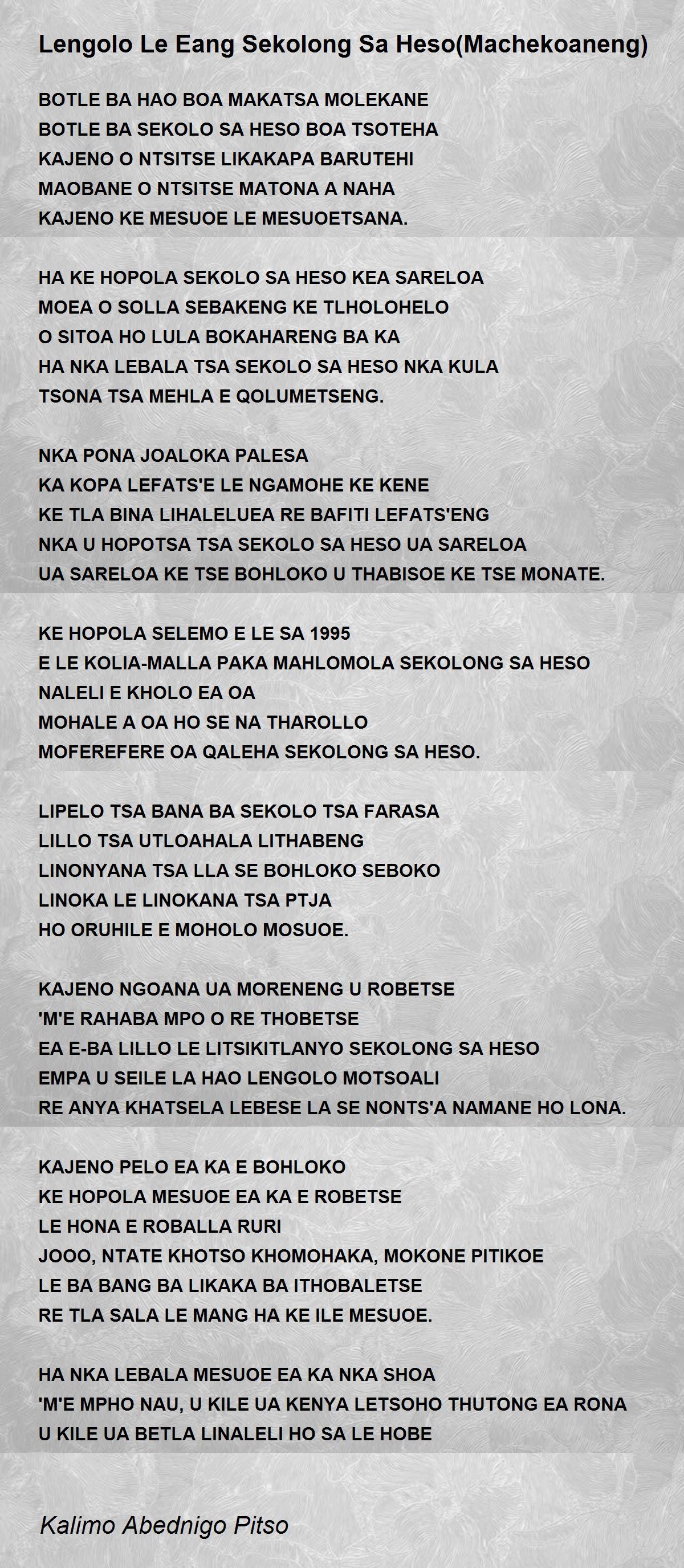 LEBAKA KE LENGOLO LE EANG MACHEKOANENG