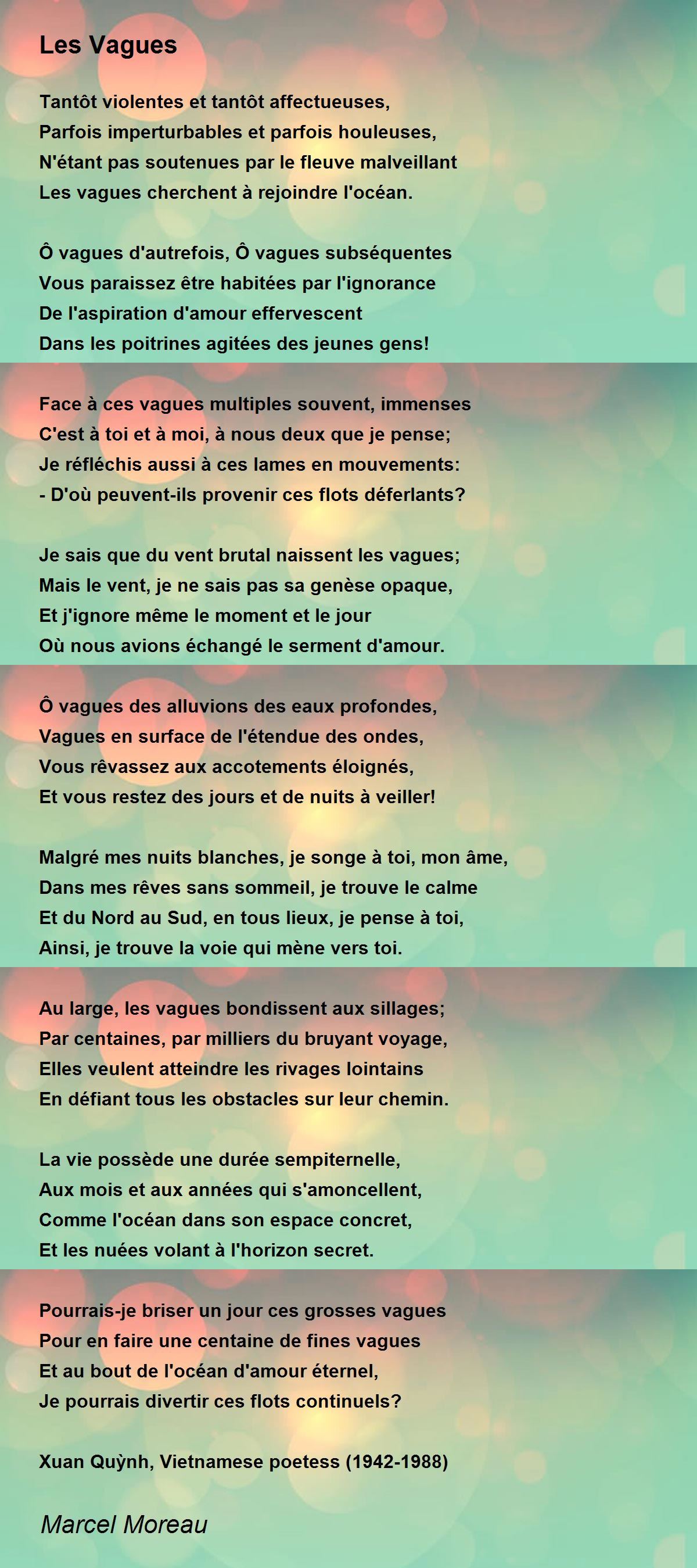 Ô vagues d'autrefois, Ô vagues subséquentes