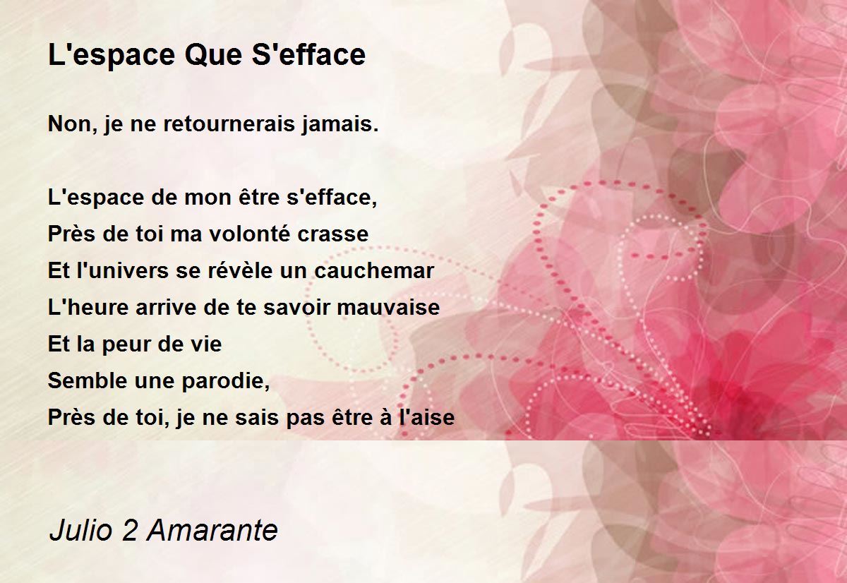 L'espace de mon être s'efface,