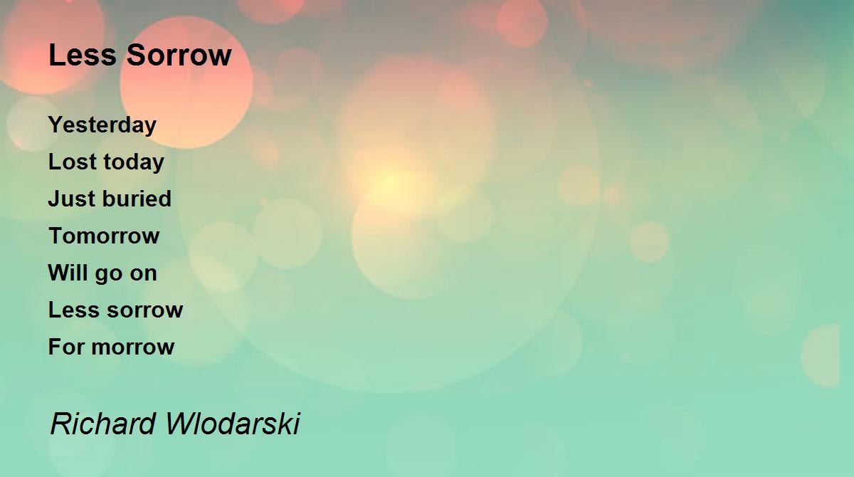Yesterday Lost today Just buried Tomorrow Will go on Less sorrow For morrow