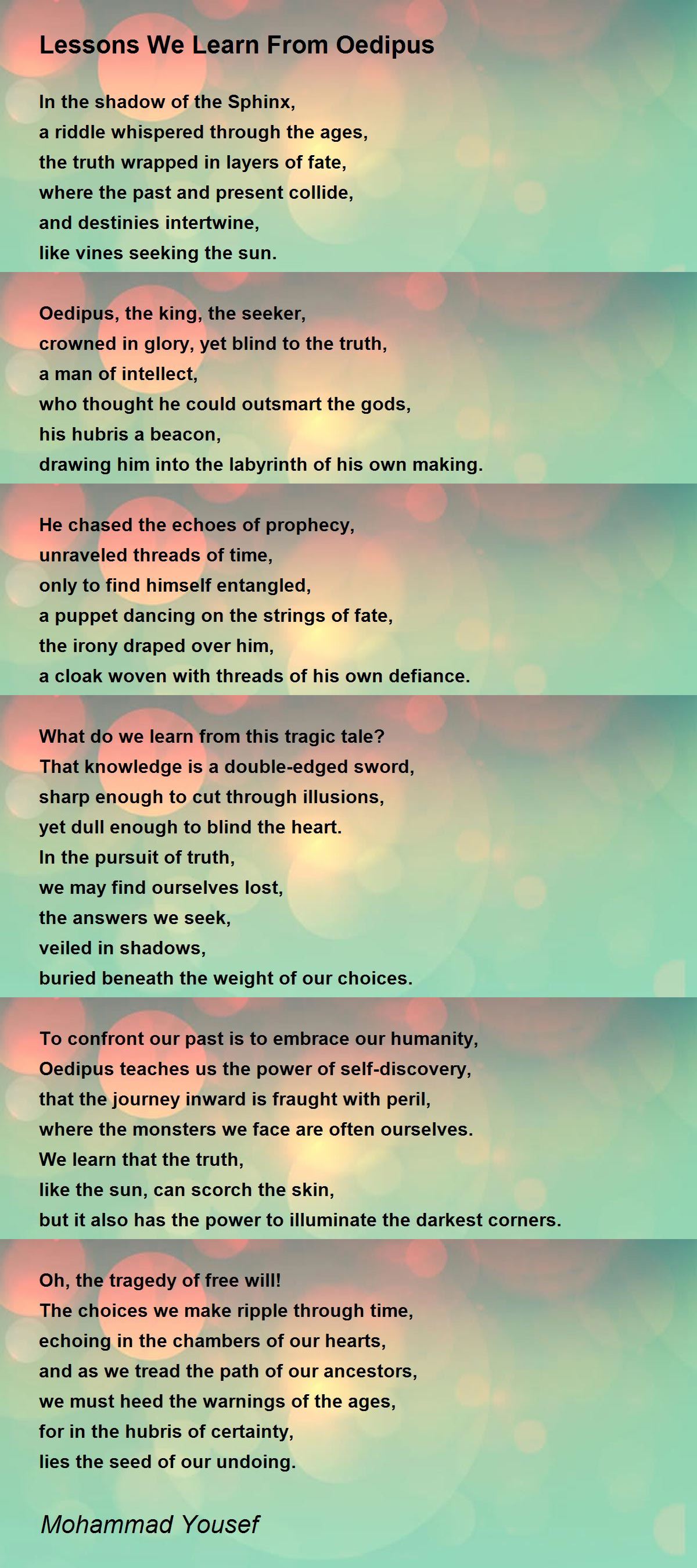 Oedipus teaches us the power of self-discovery,