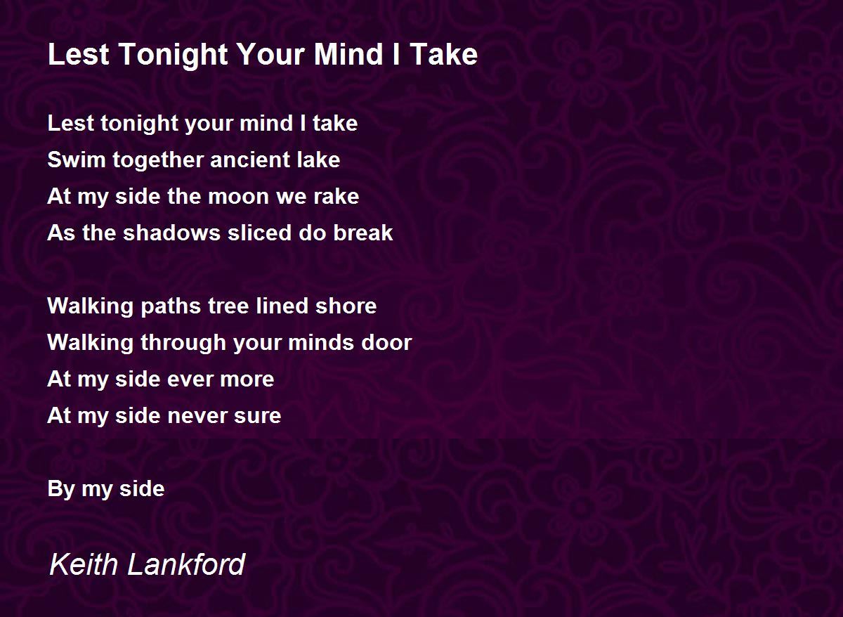 Lest tonight your mind I take