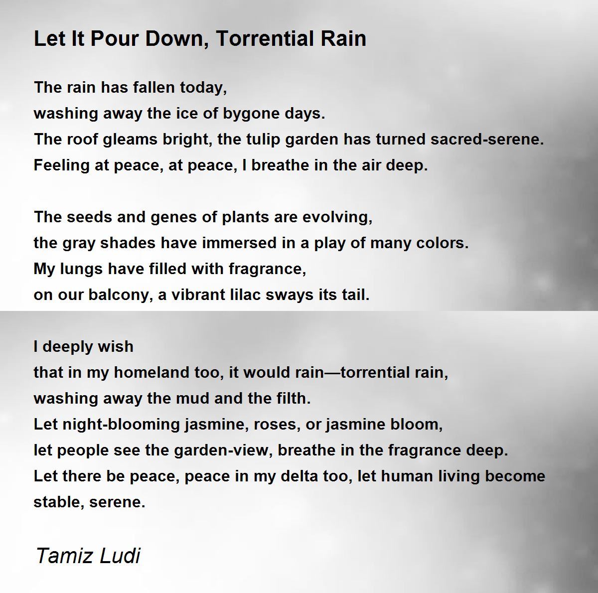 that in my homeland too, it would rain—torrential rain,