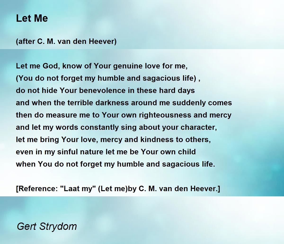 [Reference: "Laat my" (Let me)by C. M. van den Heever.]
