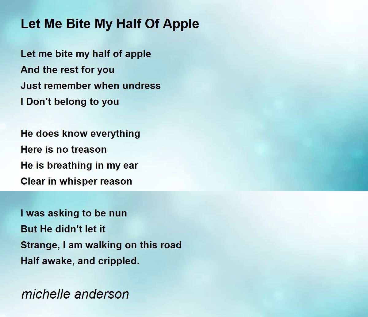 Let Me Bite My Half Of Apple Poem by michelle anderson