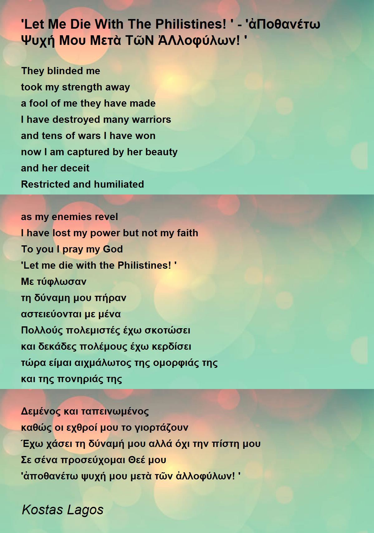'ἀποθανέτω ψυχή μου μετὰ τῶν ἀλλοφύλων! '