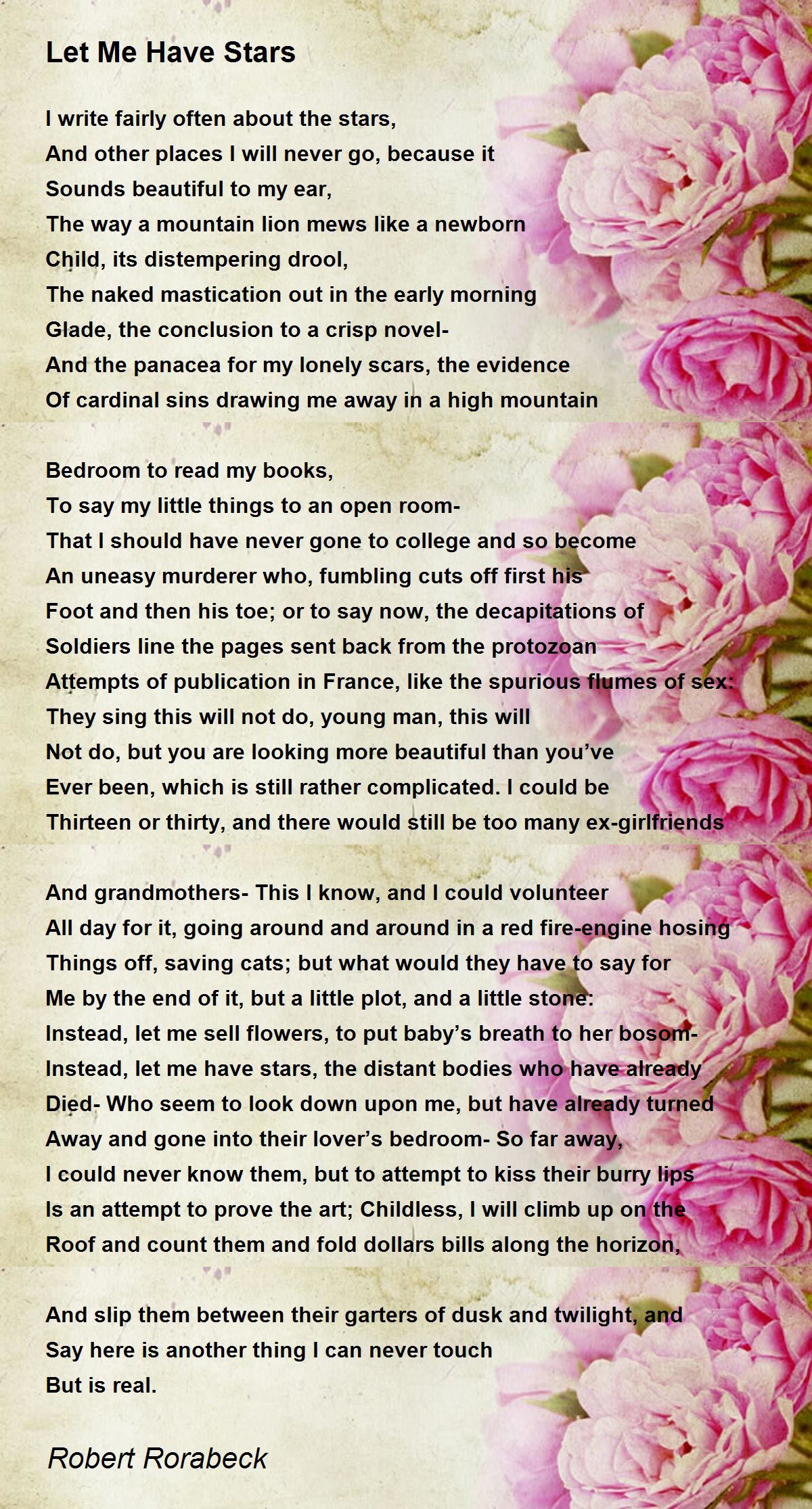 Instead, let me sell flowers, to put baby’s breath to her bosom-