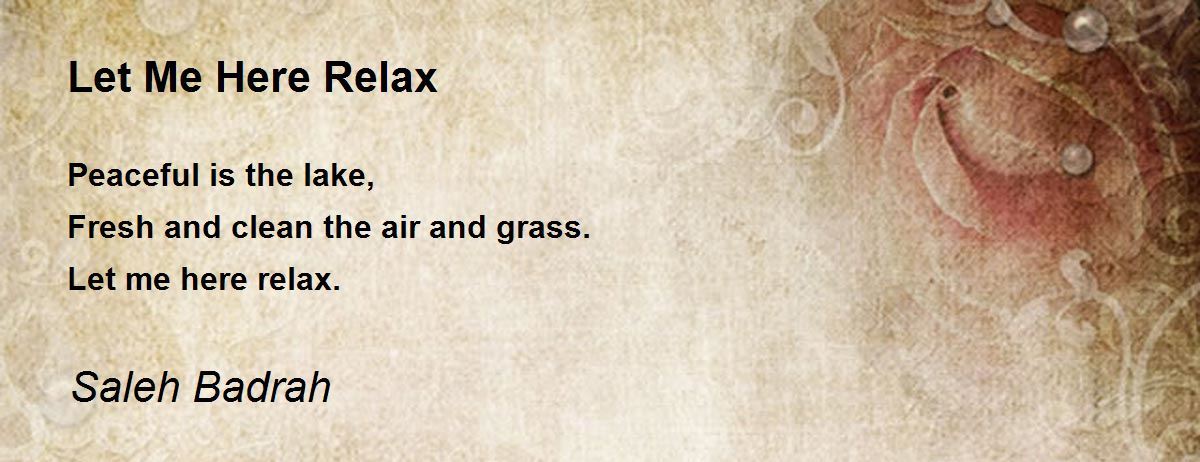Peaceful is the lake, Fresh and clean the air and grass. Let me here relax.
