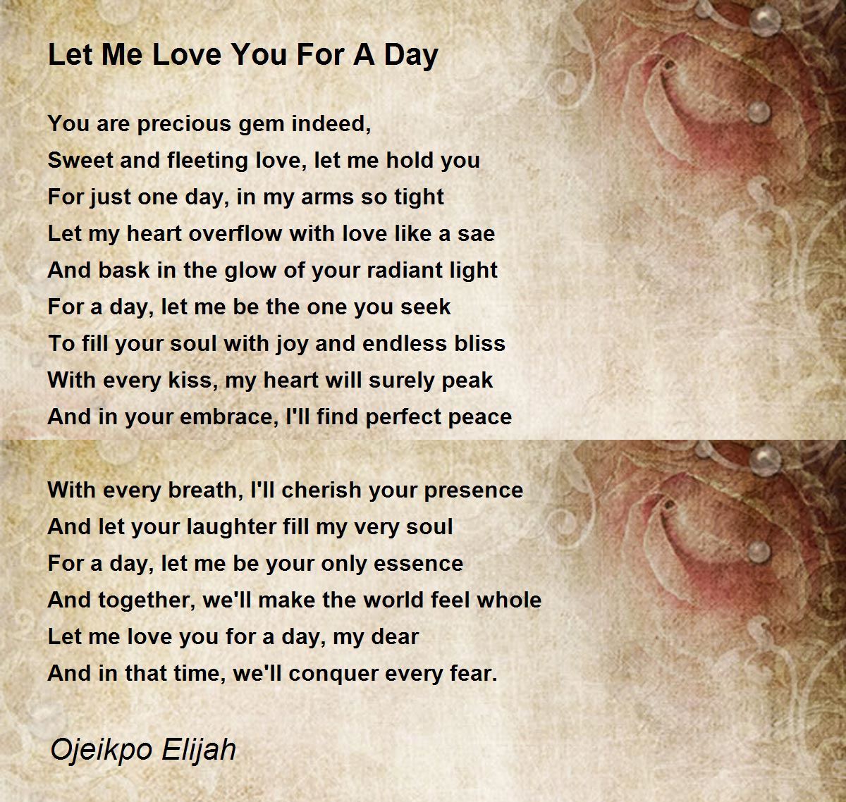 Let me love you for a day, my dear