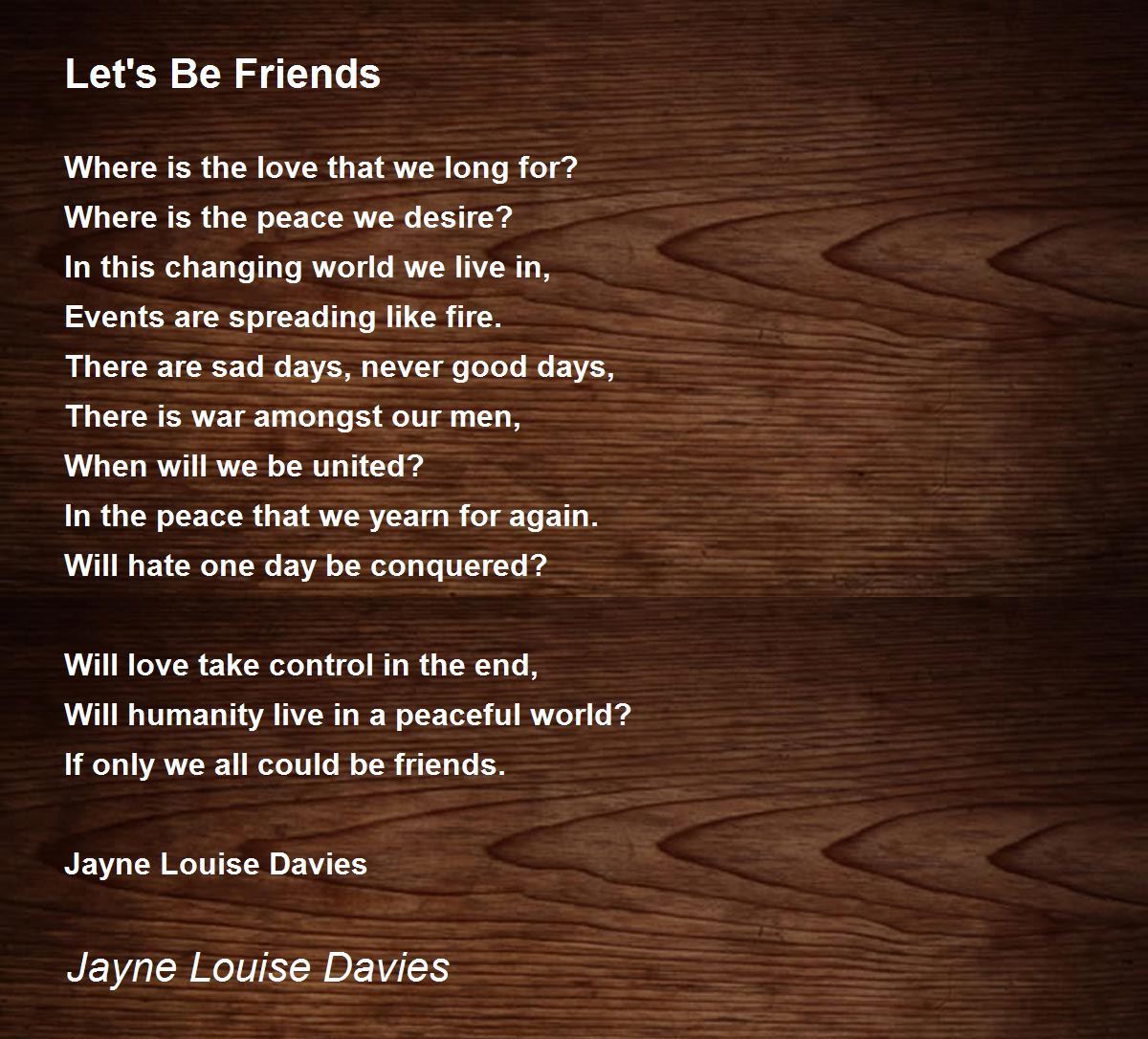 In the peace that we yearn for again.