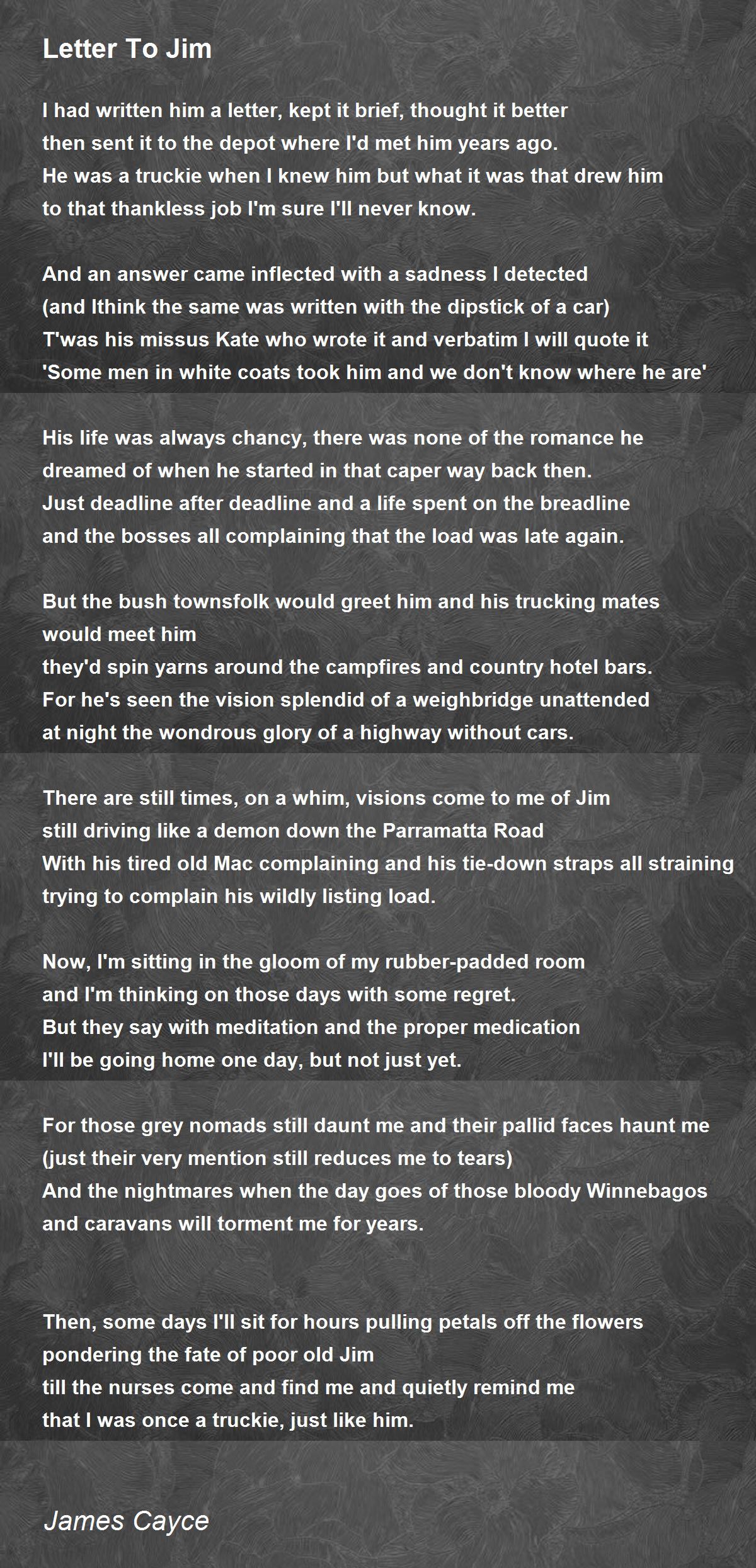 But the bush townsfolk would greet him and his trucking mates would meet him