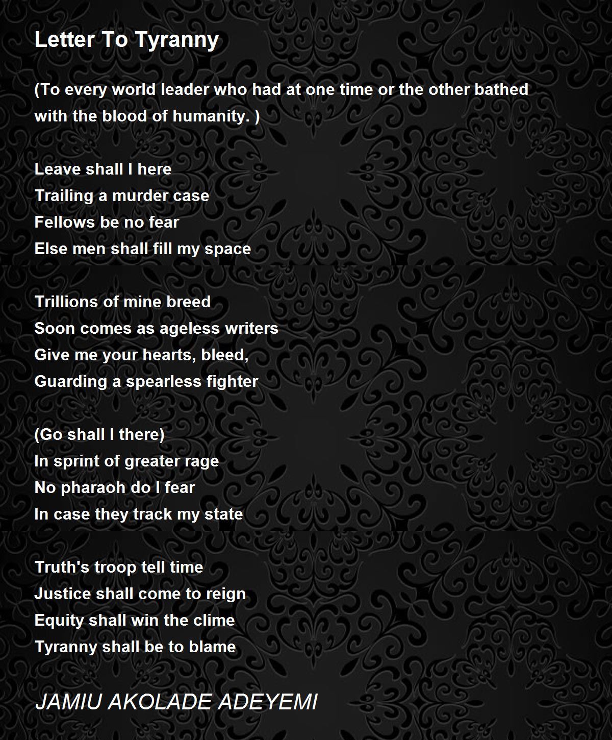 Tyranny shall be to blame