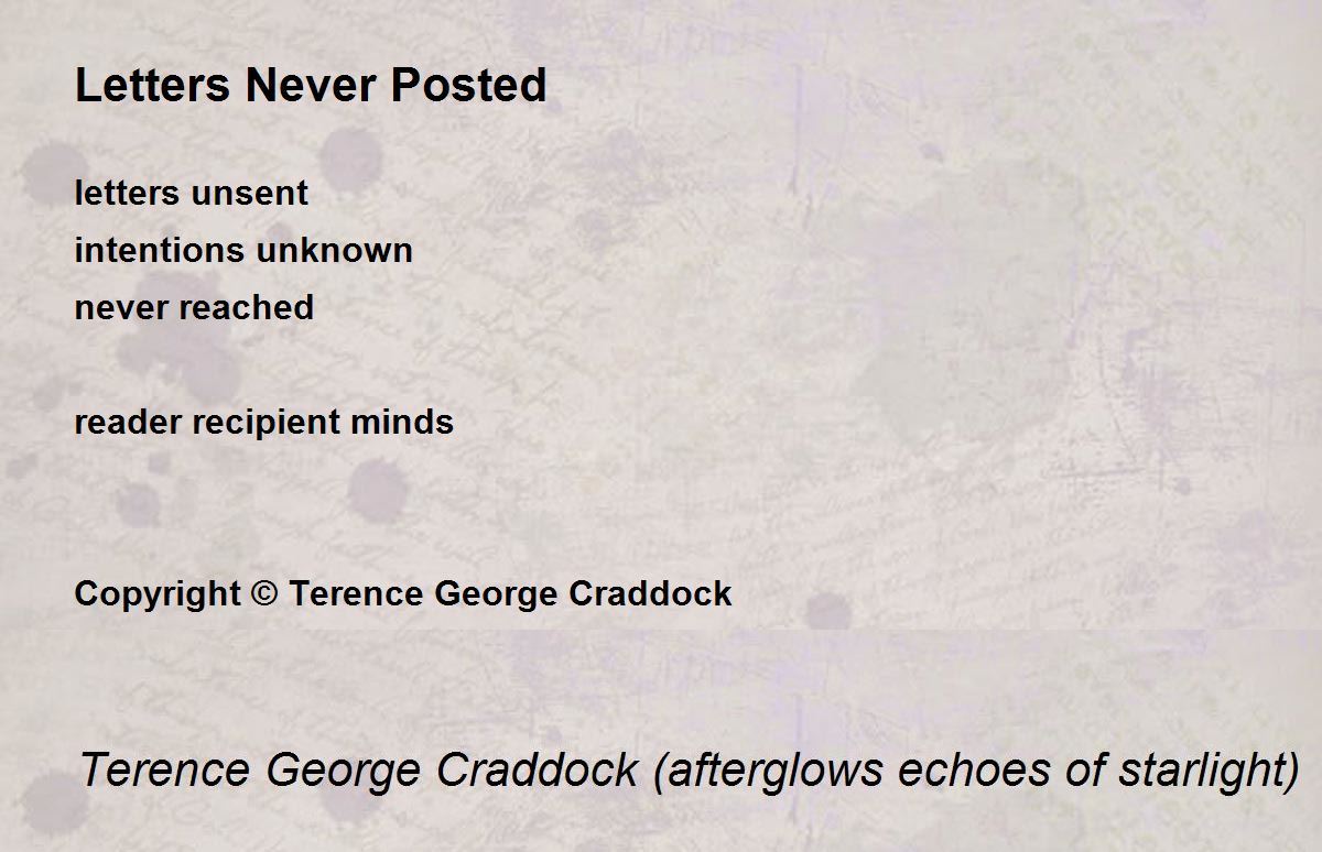 letters unsent intentions unknown never reached reader recipient minds Copyright © Terence George Craddock