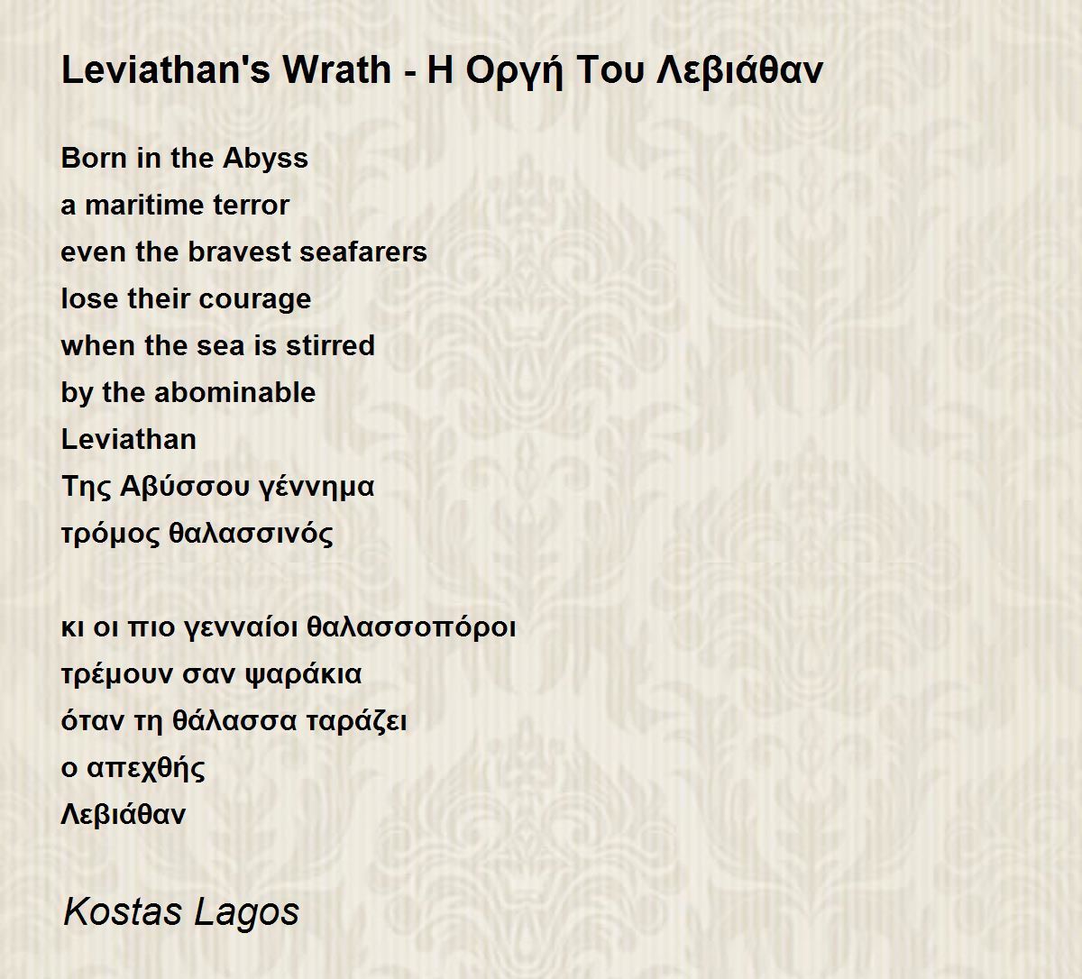 Leviathan's wrath, take greatest notice, hide yourself! Absolute thought-provoking Beauty