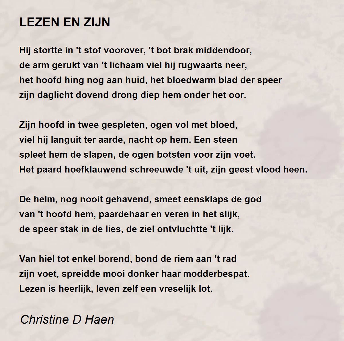 de speer stak in de lies, de ziel ontvluchtte 't lijk.