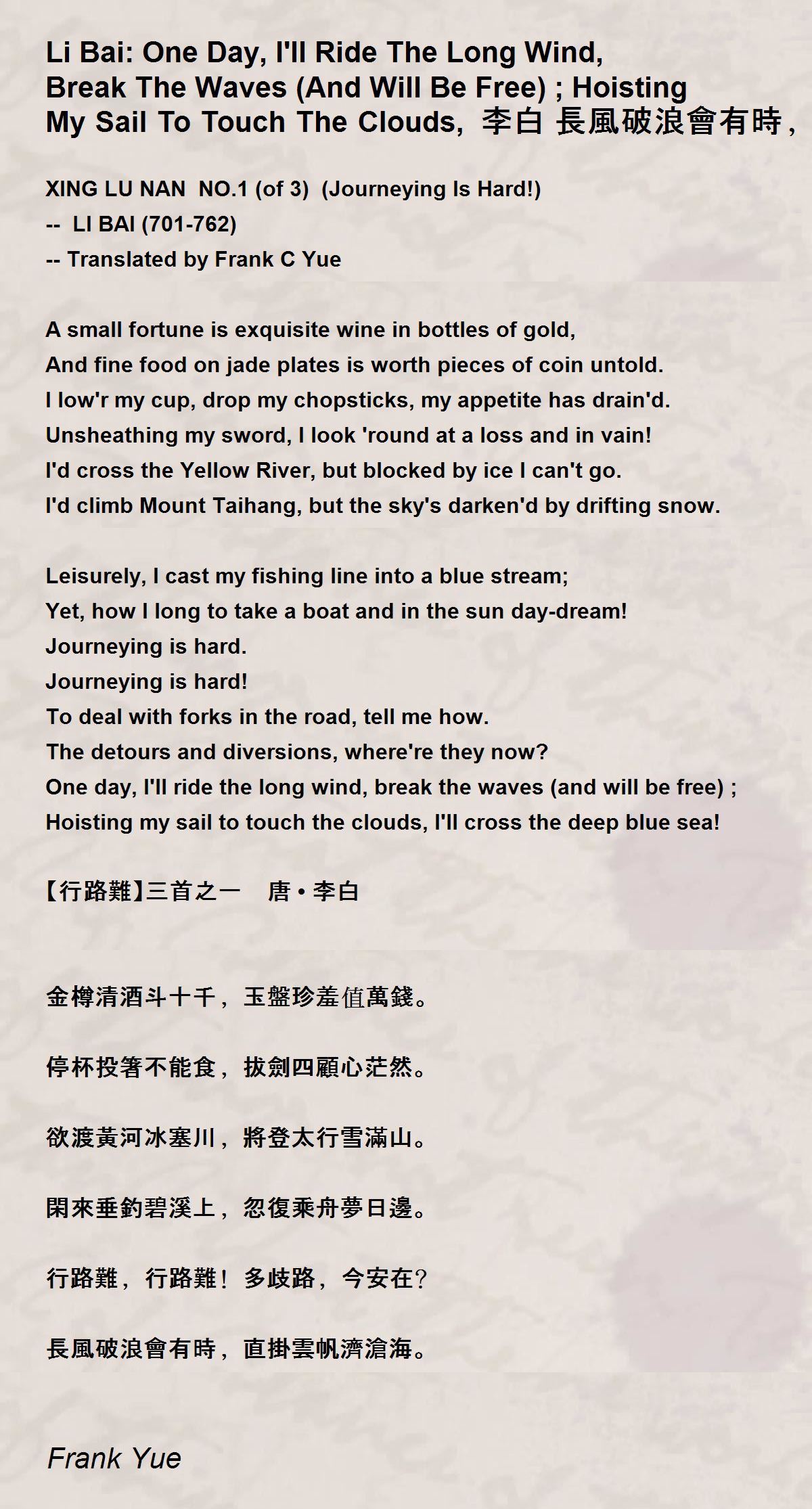 長風破浪會有時﹐直掛雲帆濟滄海。