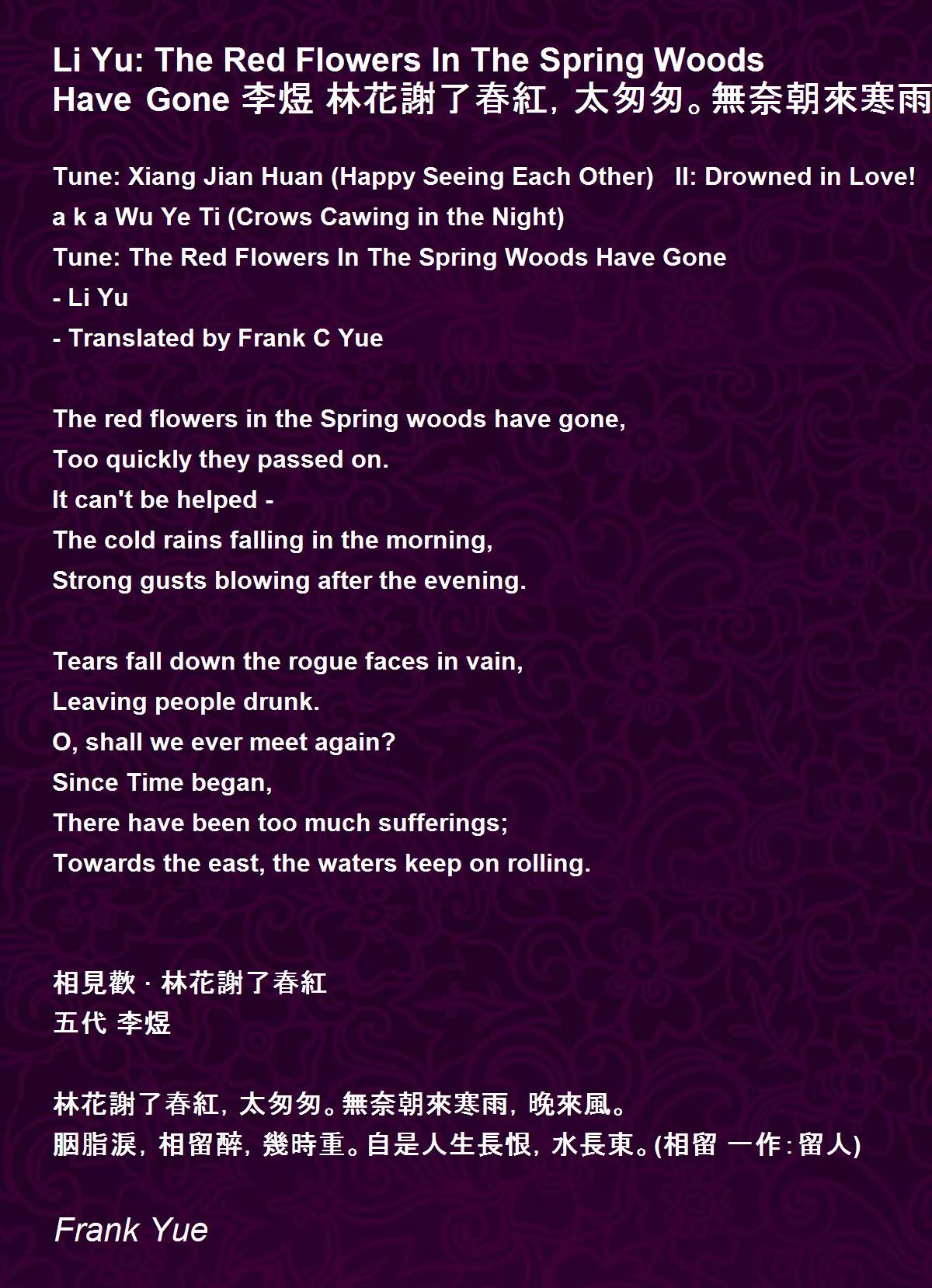 Tune: The Red Flowers In The Spring Woods Have Gone