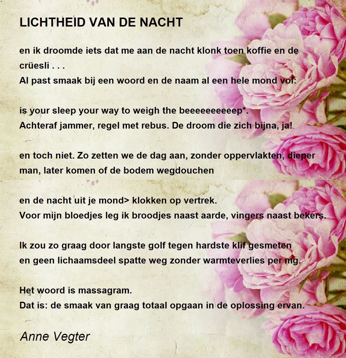 en ik droomde iets dat me aan de nacht klonk toen koffie en de crüesli . . .