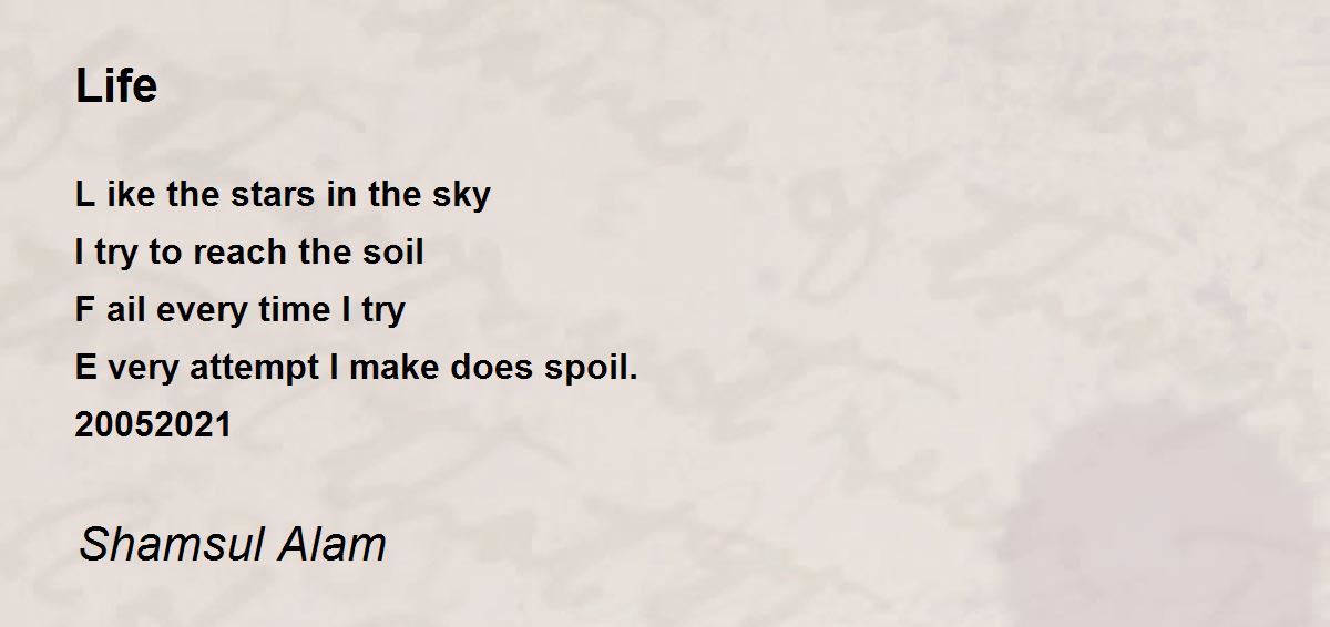 L ike the stars in the skyI try to reach the soilF ail every time I tryE very attempt I make does spoil.20052021