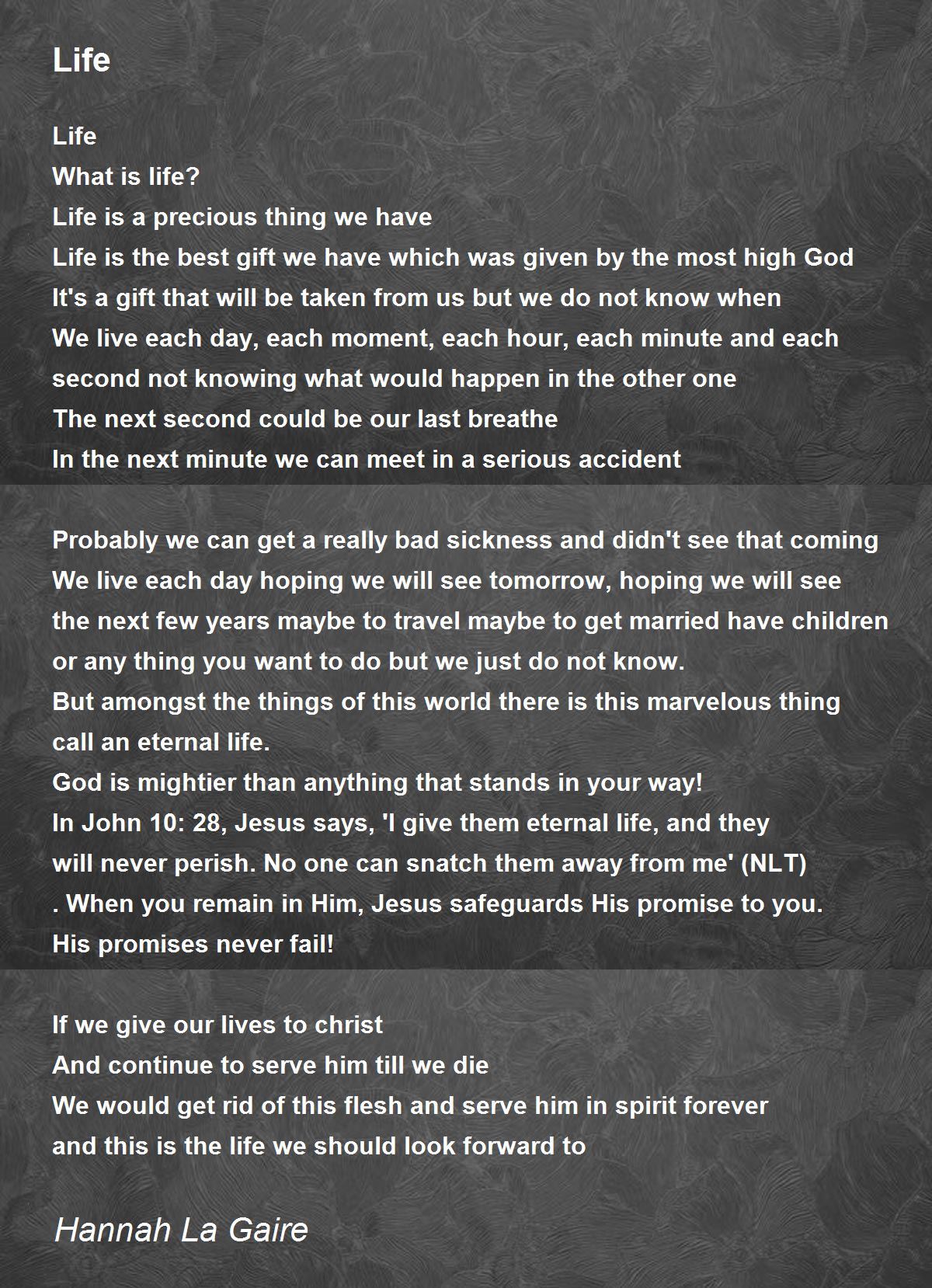 We live each day hoping we will see tomorrow, hoping we will see the next few years maybe to travel maybe to get married have children or any thing you want to do but we just do not know.