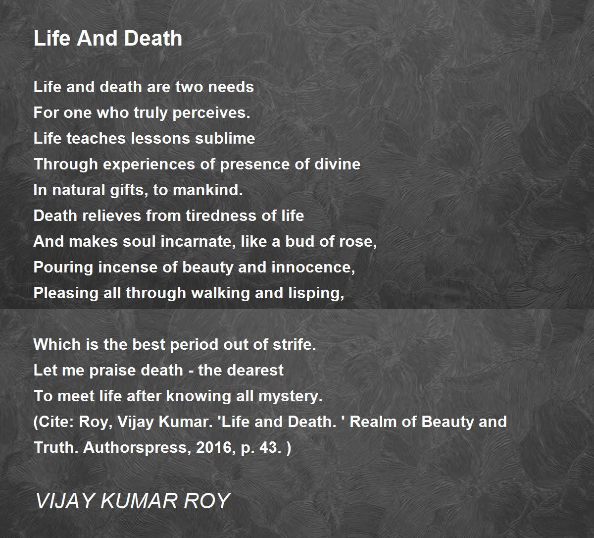 (Cite: Roy, Vijay Kumar. 'Life and Death.' Realm of Beauty and Truth. Authorspress,2016, p.43.)