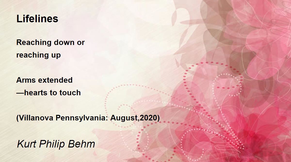 Reaching down or reaching up Arms extended —hearts to touch (Villanova Pennsylvania: August,2020)