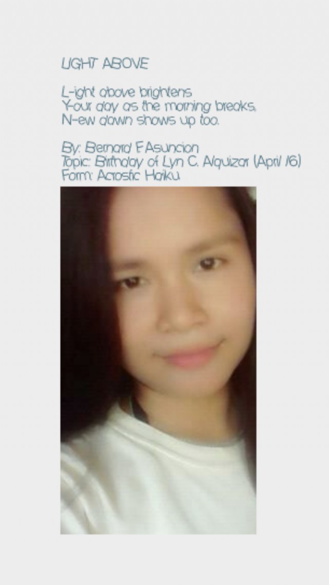 Topic: Birthday of Lyn C. Alquizar (April 16)