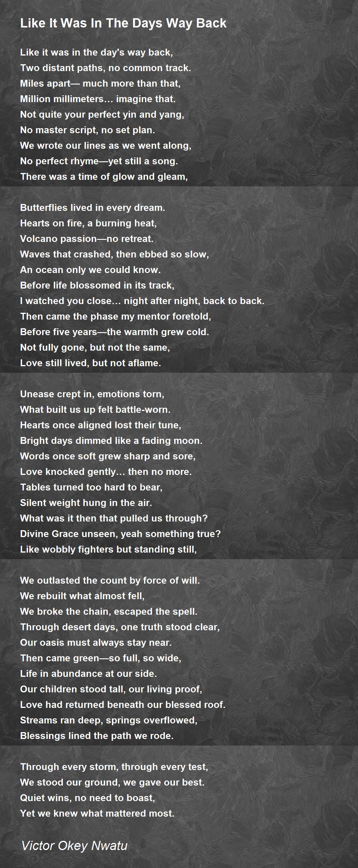 Like it was in the day's way back,